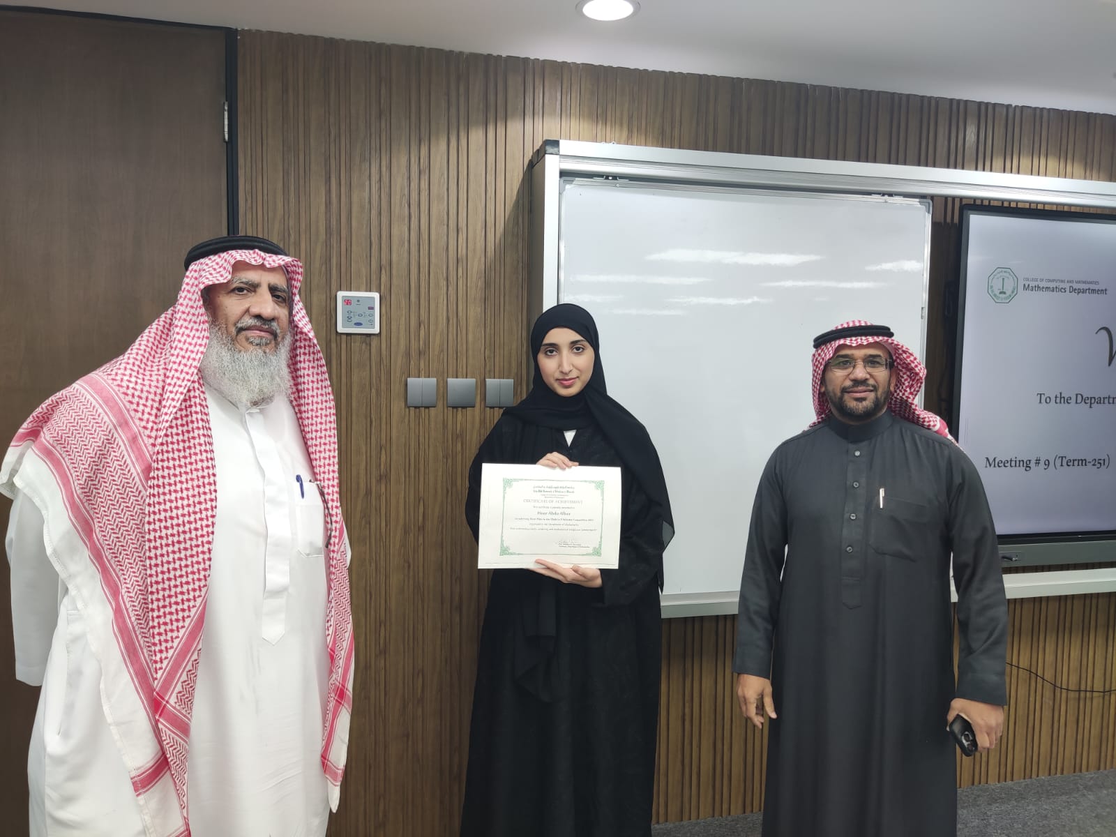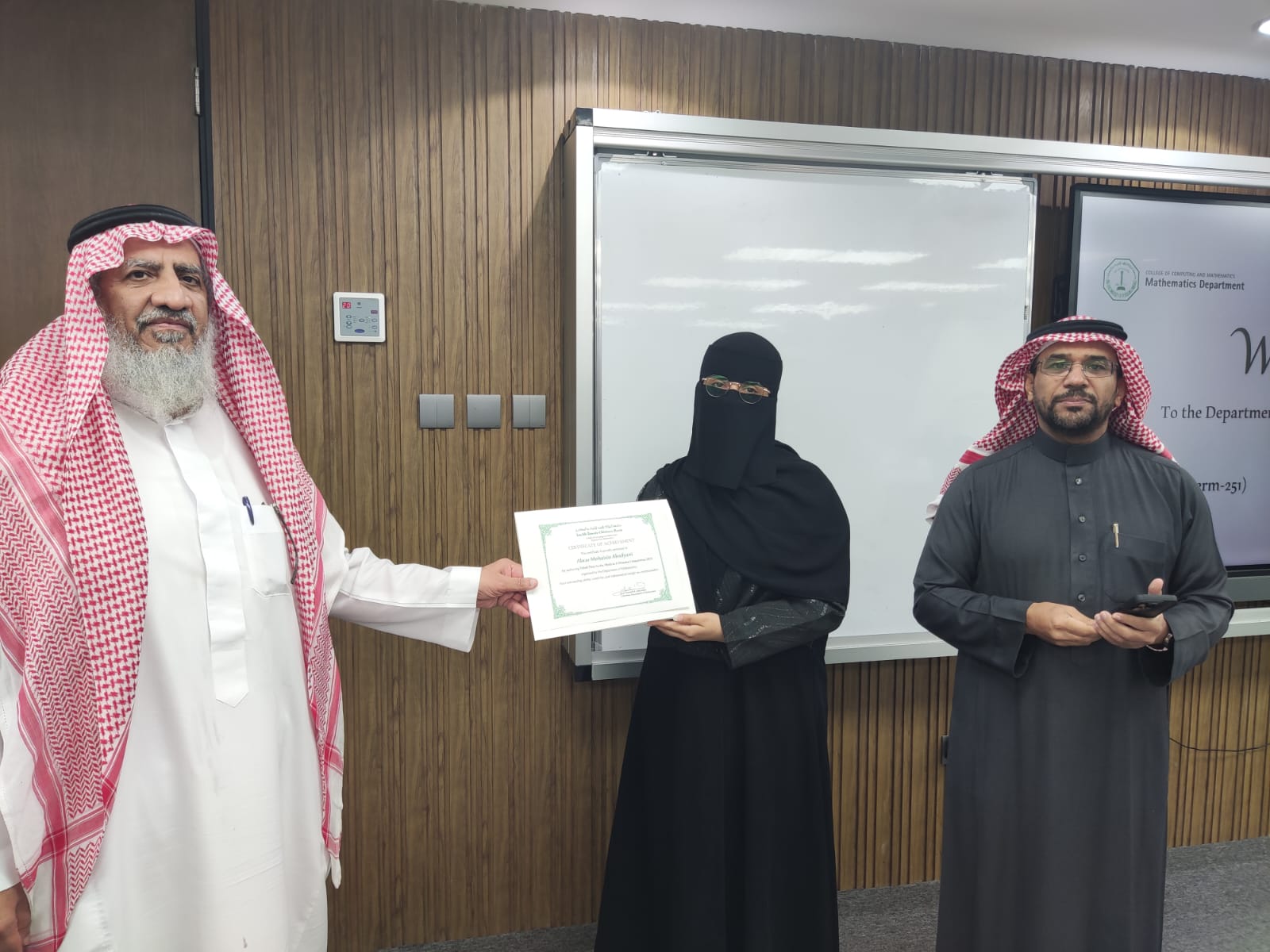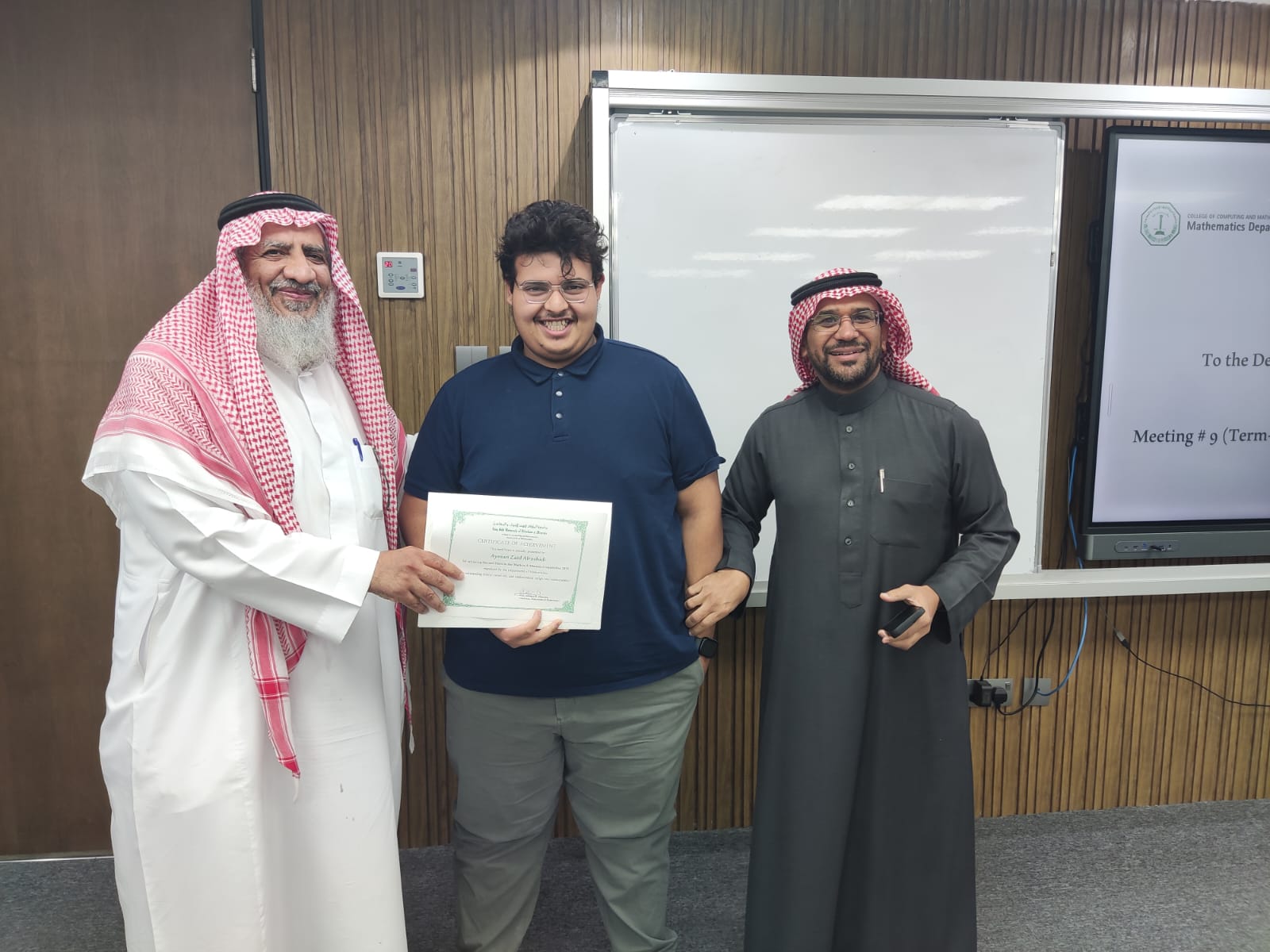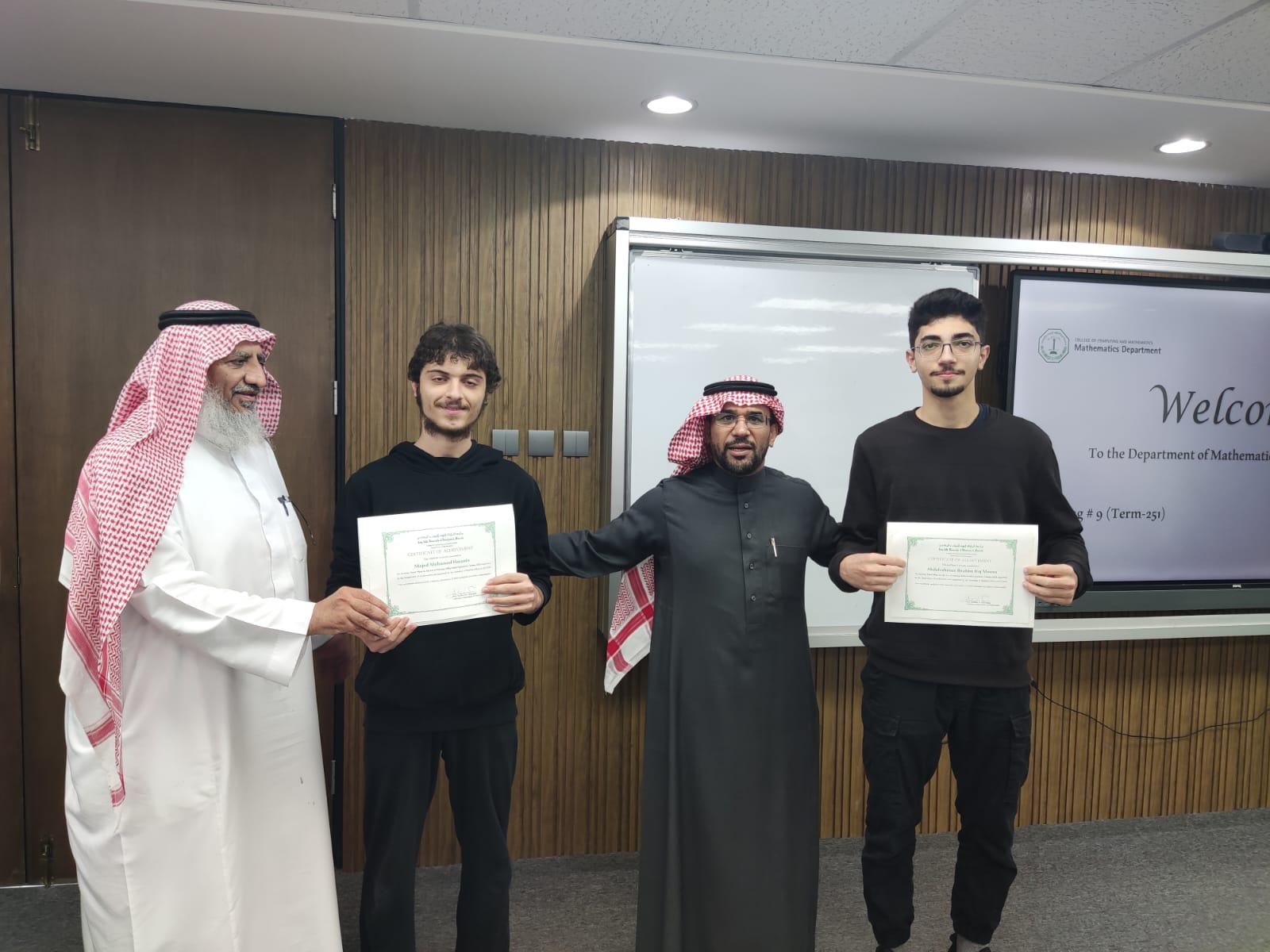 The Department of Mathematics, in collaboration with the Deanship of Student Affairs, organized two events titled “The Art of Solving Differential Equations” on Monday, December 1, 2025, and “Math in 5 Minutes” on Monday, December 8, 2025. The Chairman of the Department of Mathematics highlighted that the objective of these competitions was to motivate students to participate in regional and international contests. Winners of both events were presented with certificates of achievement along with cash prizes.